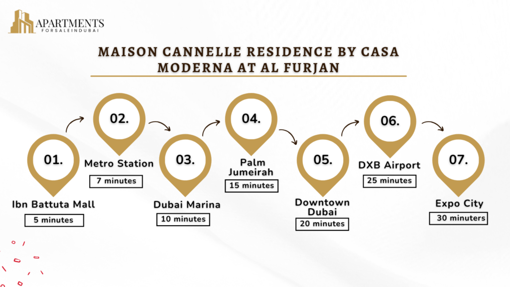 Maison Cannelle Residence is a strategically located place in Al Furjan, Dubai. It provides fast services to key destinations, business hubs, and lifestyle destinations in the city.