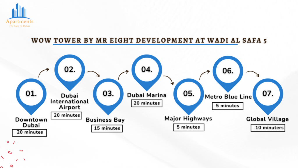 Wadi Al Safa 5, one of Dubai’s developing neighborhoods, is where WOW Tower is situated. This implies that major city roads provide residents with access to various parts of the city.